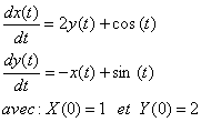 - Déterminer la fonction x(t) et y(t) vérifiant :