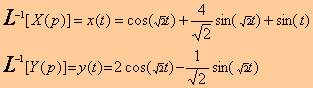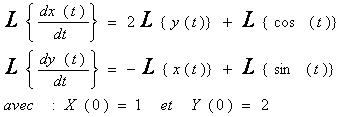 On appliquant la transformée de Laplace inverse sur X(p) et Y(p) obtenus, on obtient: